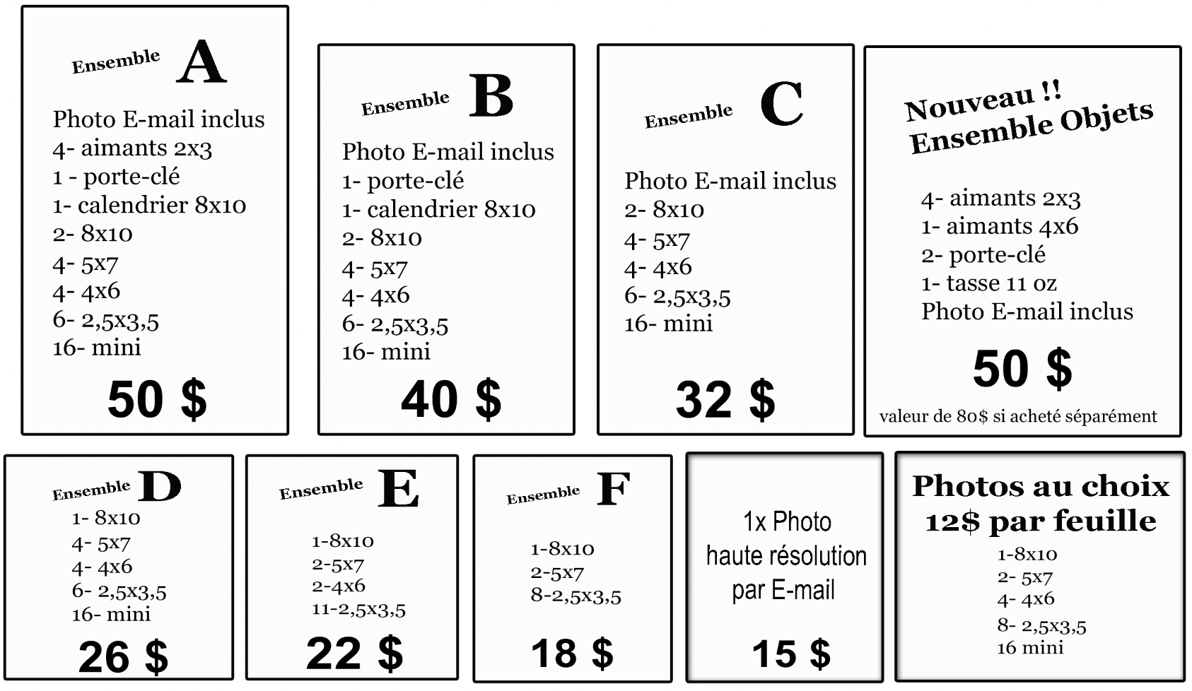 Nous prenons habituellement entre 4 et 10 photos par étudiants, ils peuvent choisir différentes couleurs de toge, c’est une mini séance d’environ 5 minutes par personnes. Les prix varient selon la quantité d’élève, pour les écoles de 100 élèves et plus, les ensembles de photos coûtent entre 30$ et 65$.